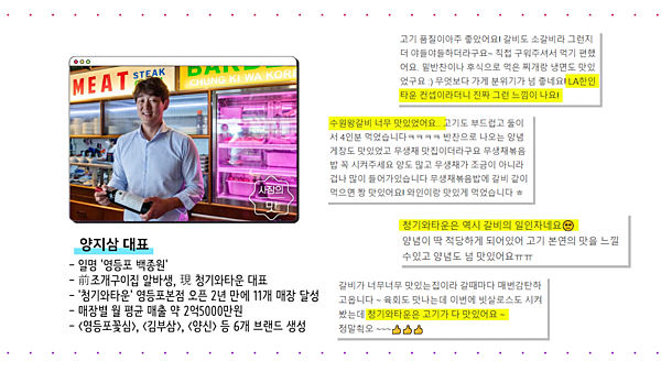 오늘은 전 세대를 아우르는 입지 ‘영등포’에서 미국 LA에 있을 법한 한인타운 콘셉트의 소갈비집을 차려 대박을 낸 ‘청기와타운’ 영등포점 양지삼 대표를 찾아가 보겠습니다.