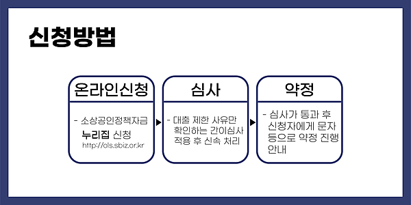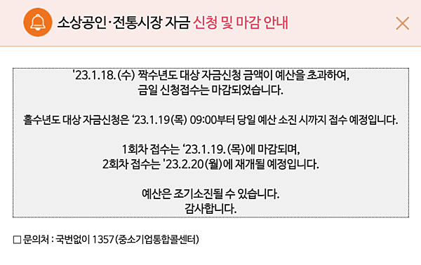 1/16(월) 오전 9시부터 소상공인·전통시장자금 신청 접수가 시작되었으니 소상공인정책자금 누리집 홈페이지(http://ols.sbiz.or.kr)에서 온라인으로 신청하실 수 있습니다.