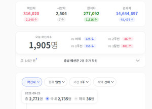 [속보]코로나19 실시간 확진자수 '또 2천명' 육박