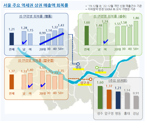 코로나19도 비껴간 성수동 상권…명동은 완전한 '회복세'