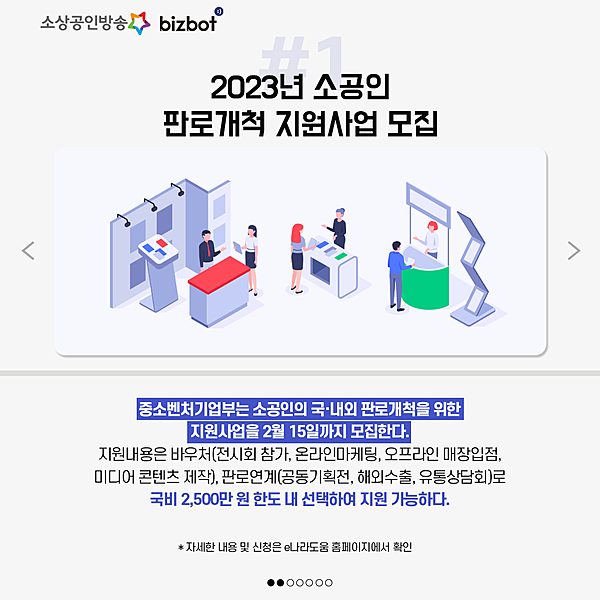 비즈봇은 사업자 번호만 입력하시면, 업종과 사업자 규모에 맞는 지원사업 조회가 가능한 서비스를 제공하고 있으니 많은 이용바랍니다.