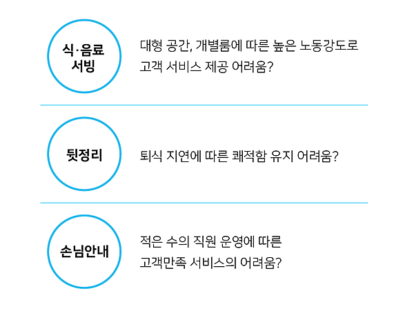 주문과 결제는 테이블마다 설치된 테이블 오더로 손님들이 직접 하고, 음식 서빙도 로봇이 맡아서 하는 것을 말해요.