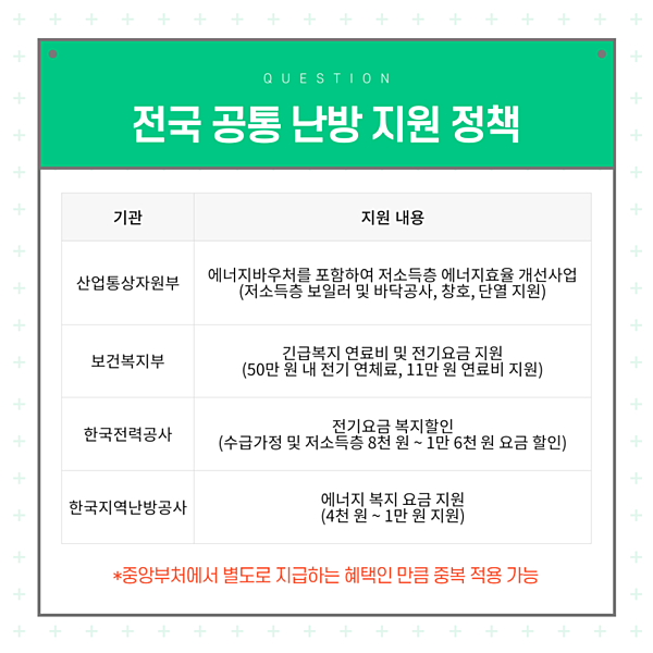 전국 공통 난방 지원 정책은?