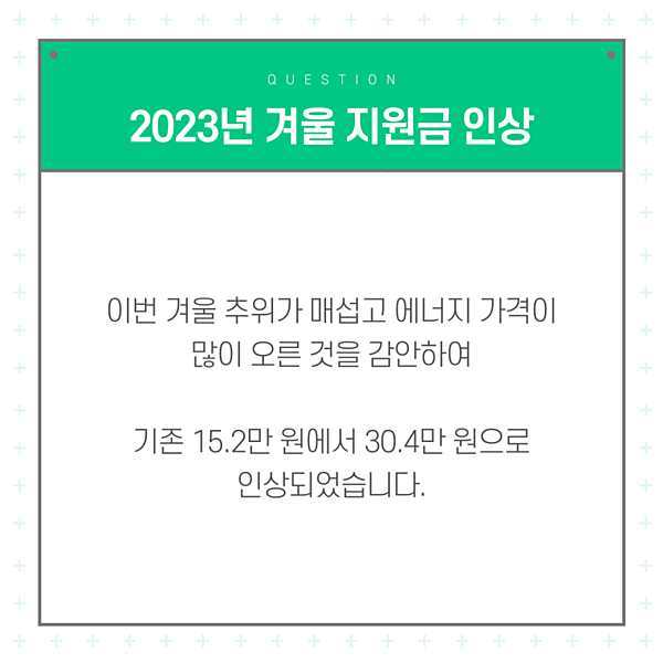 다행히 이번 겨울 추위가 매서웠을 뿐만 아니라 에너지 가격이 많이 오른 것을 감안하여 지원금을 인상하여 지급한다고 합니다.