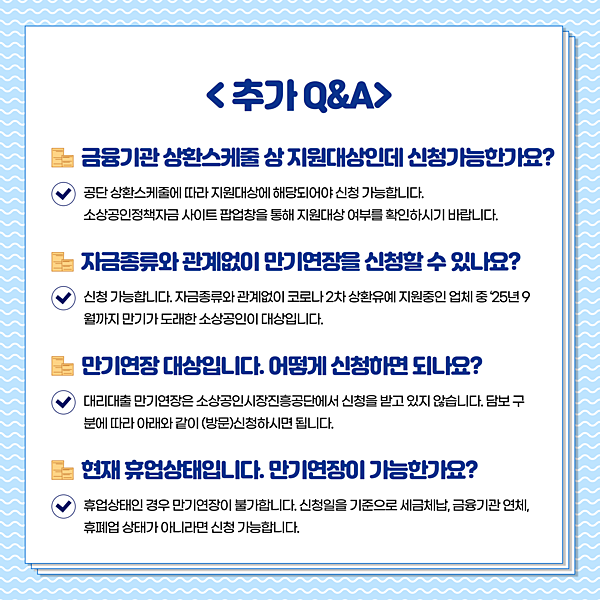 📌 지원내용 : ‘25년 9월까지 12개월 단위로 반복적 만기연장 지원 (단, ‘25년 9월까지 남은 기간만 만기연장 가능)