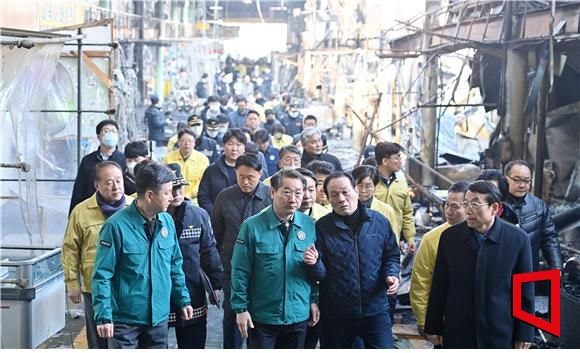 유정복 시장, '잿더미' 현대시장 찾아…"피해복구 지원 최선 다하겠다"