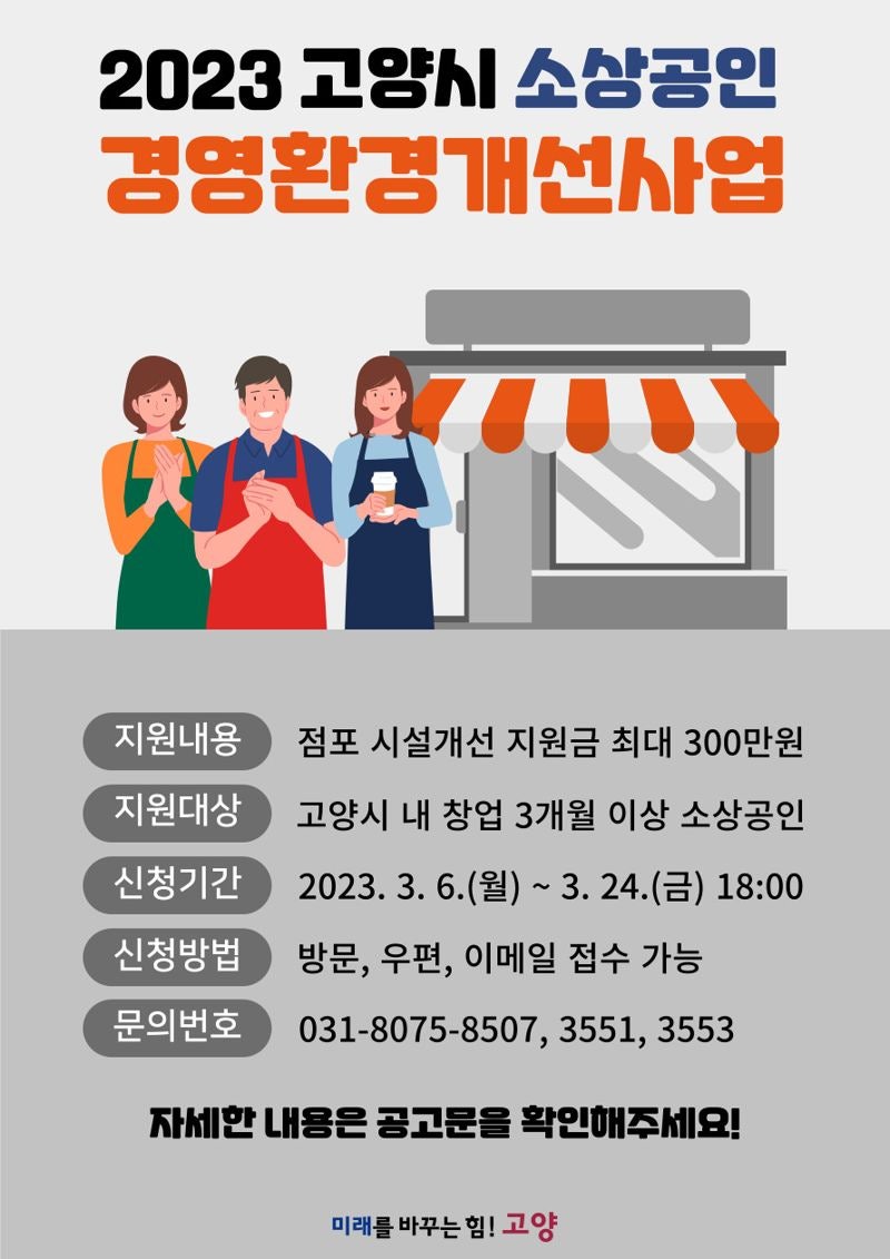고양시, 소상공인 '점포 시설 개선비' 최대 300만원 지원