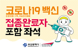 부산시, 음식점에 백신접종 완료자 동반 좌석 안내 스티커 배부