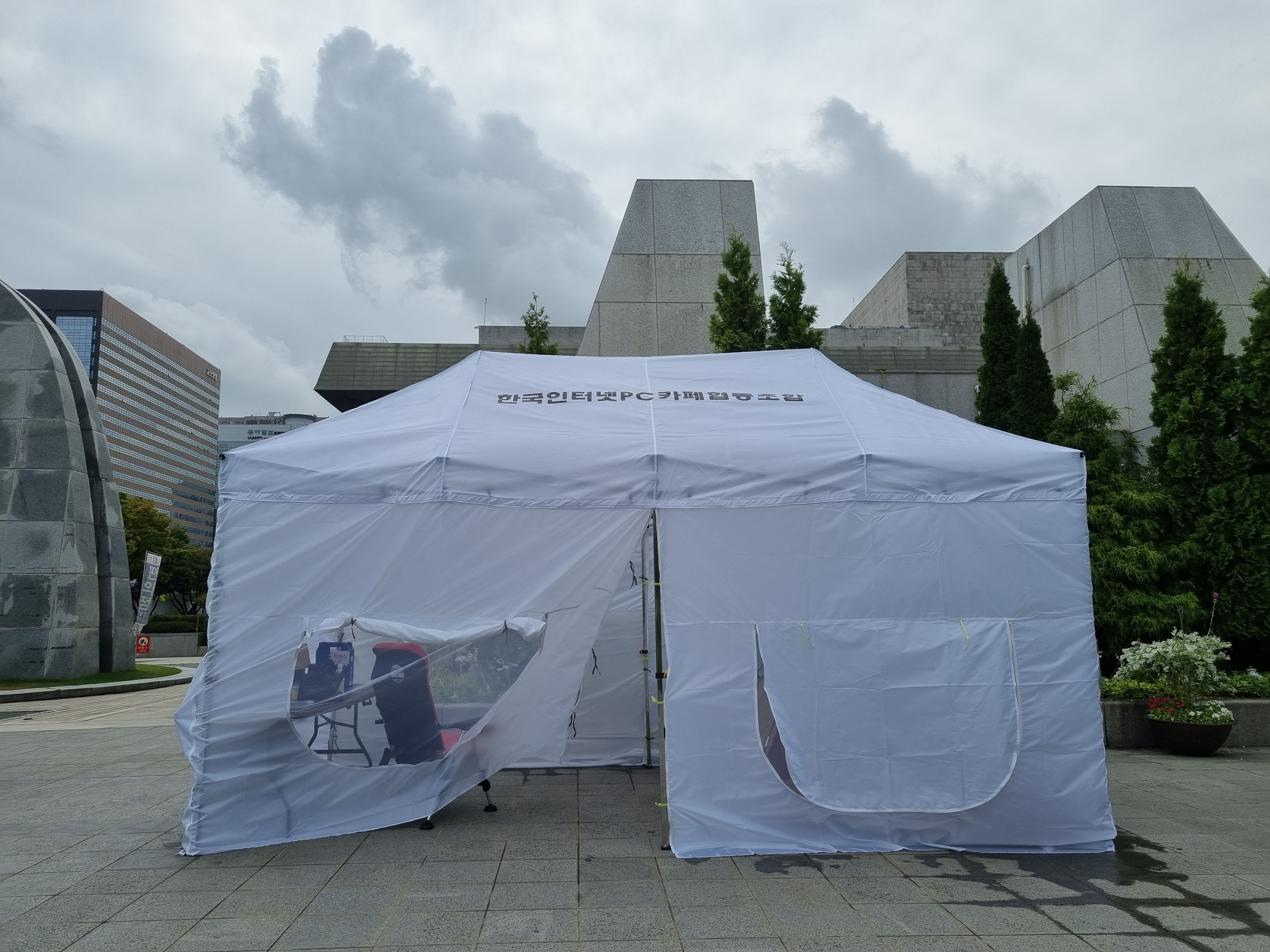 자영업자들, 정부청사 앞 ‘손실보상 요구’ 무기한 천막농성