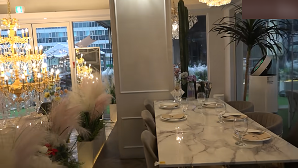 대리석, 파티룸 좌석, 꽃 등 다양한 제품들을 활용해 여성분들이 좋아할 만한 고급스럽고 우아한 분위기를 만든거죠.