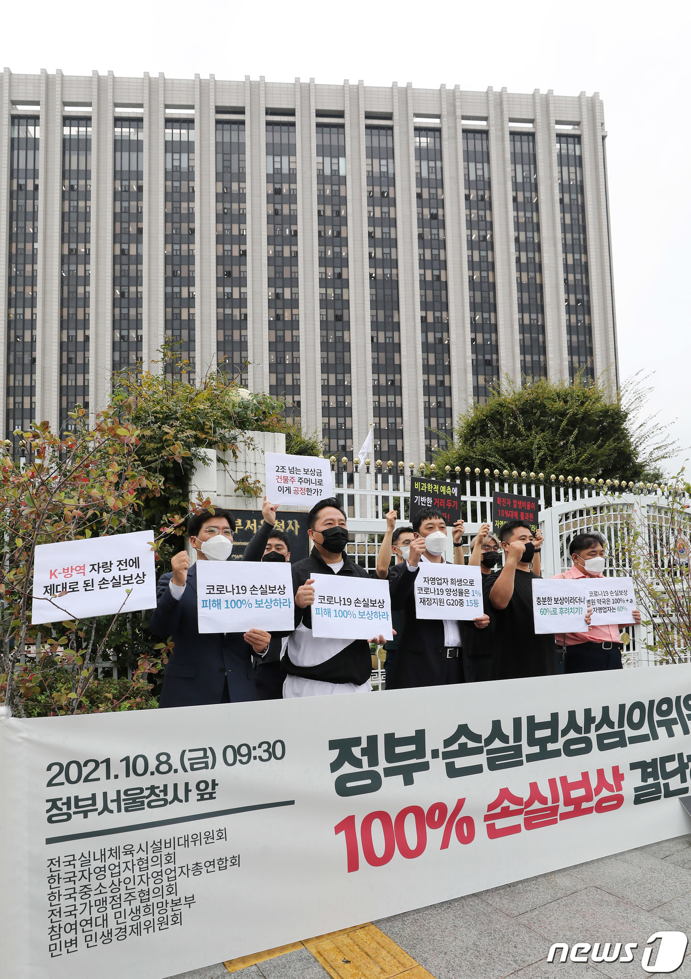 정부청사 앞에서 구호 외치는 자영업자들