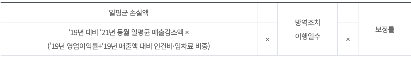 또한, 일평균 손실액 산출시, 영업이익률 이외에 매출액 대비 인건비·임차료 비중을 100% 반영함으로써 보다 두텁게 보상할 계획이다.