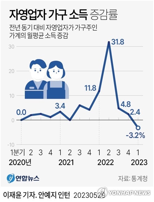 [그래픽] 자영업자 가구 소득 증감률