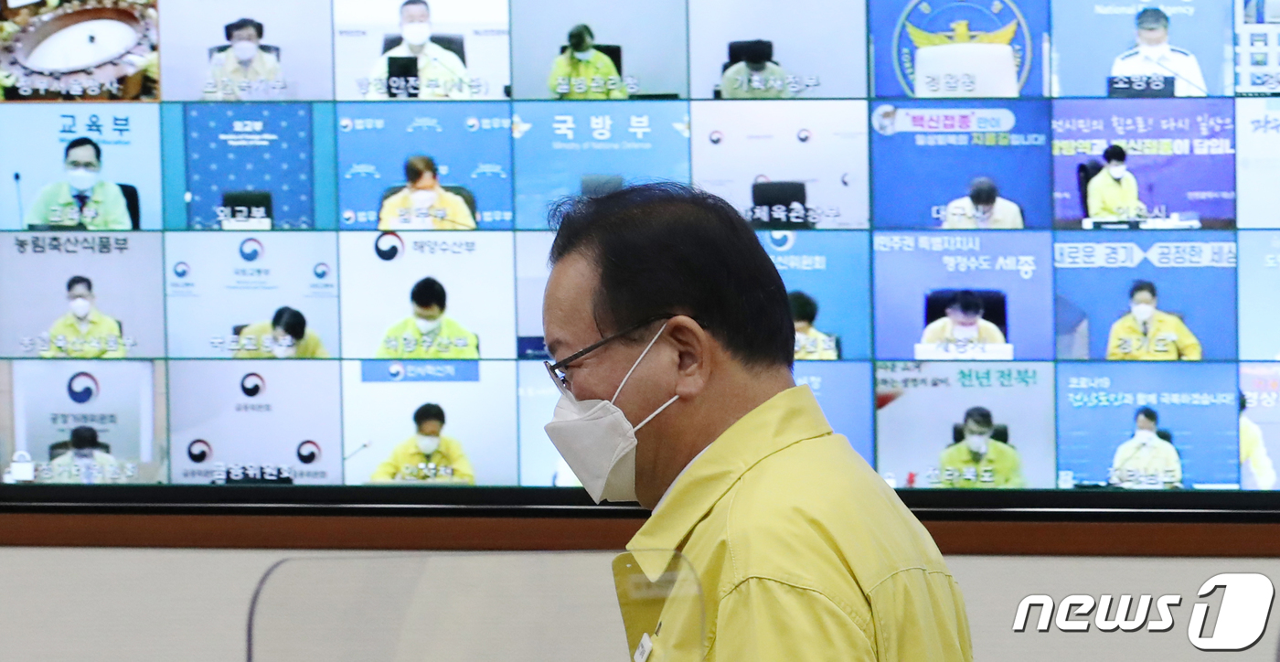 코로나19 중대본 회의 참석하는 김부겸 총리