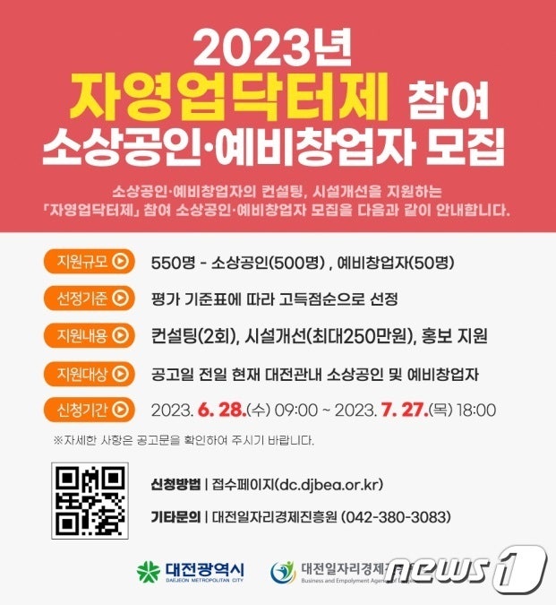 대전시 ‘자영업닥터제’ 참여 소상공인·예비창업자 공모