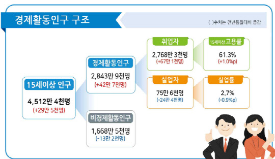 9월 취업자수 67.1만명 증가…코로나19 4차 확산에도 7개월 연속 증가세