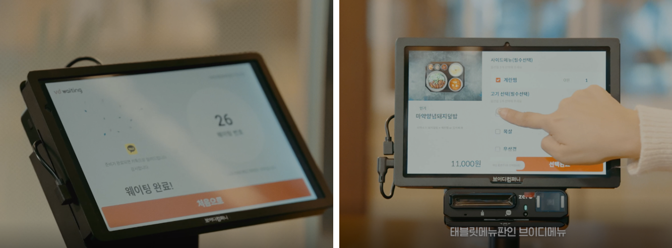 "브이디컴퍼니에서 운영하는 식당인 1992덮밥&짜글이 독산 스마트 1호점은 모든 브이디솔루션이 도입되어 있어요. 브이디메뉴부터 브이디포스, 브이디웨이팅까지 모두 설치되어 있습니다.