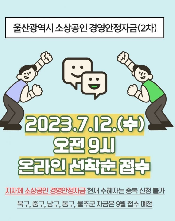 울산 소상공인 2차 경영안정자금 250억원 푼다