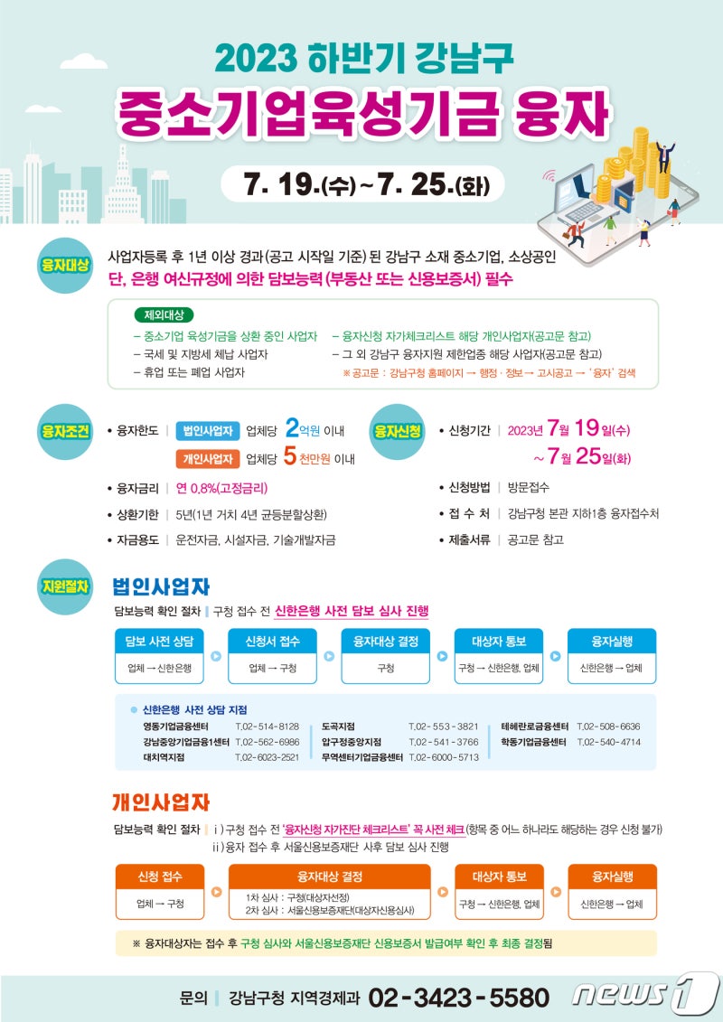 강남구, 중소기업·소상공인에 하반기 100억원 융자 지원