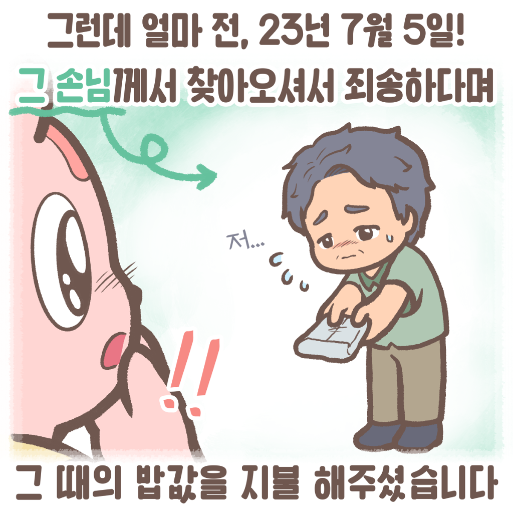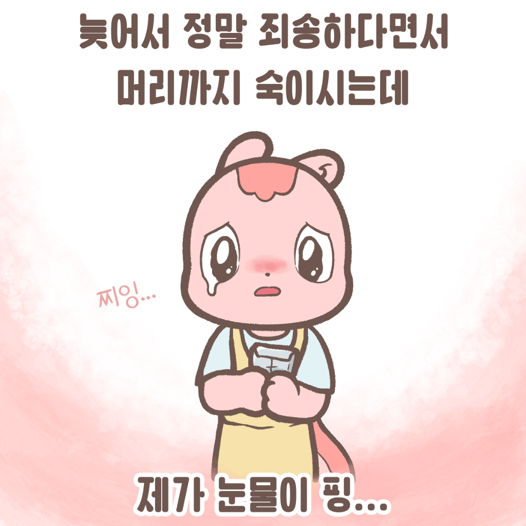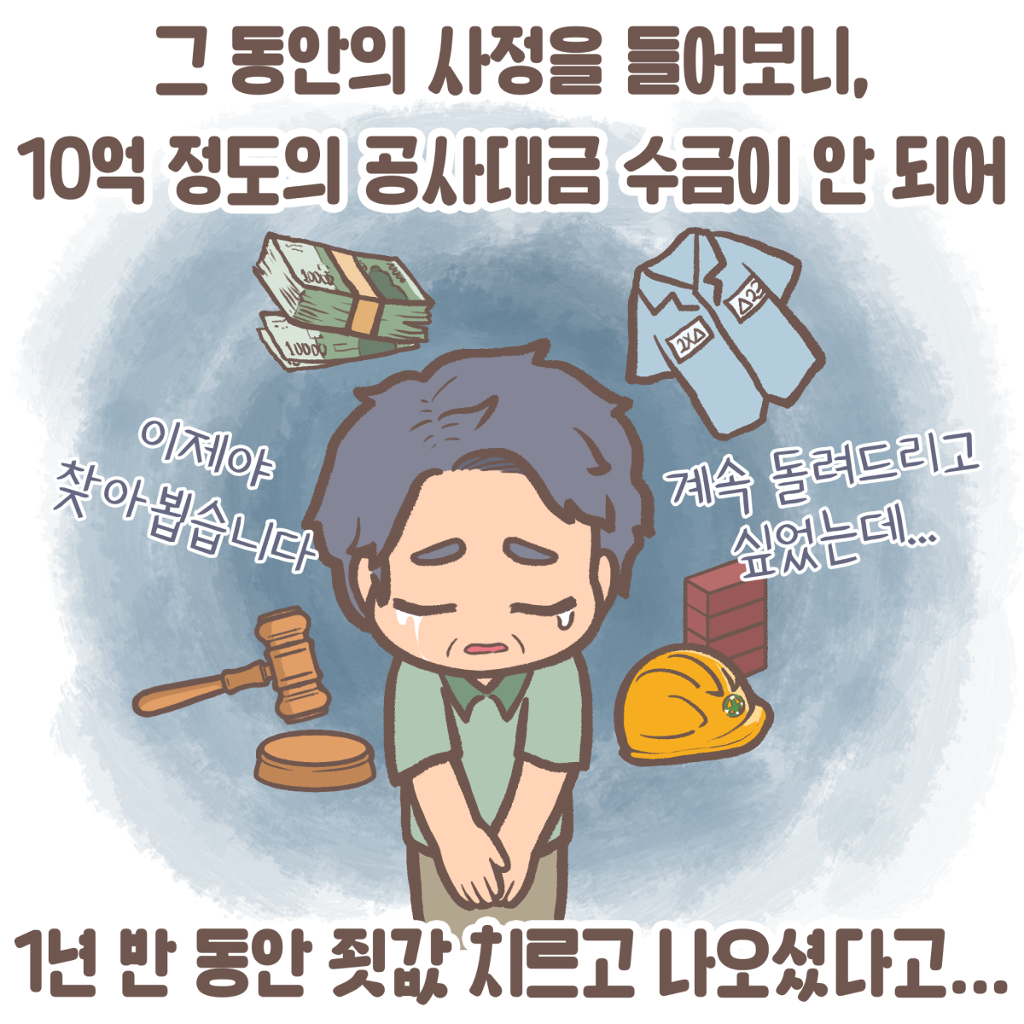 손님 사정을 들어보니 공사 대금 10억정도 되는 돈이 수금이 안되서 1년 6개월정도 "그곳" 에 들어갔다 나오셨다고 하시면서 늦어서 정말 죄송하다고 머리숙이시는데 제가 눈물이 핑... 😭