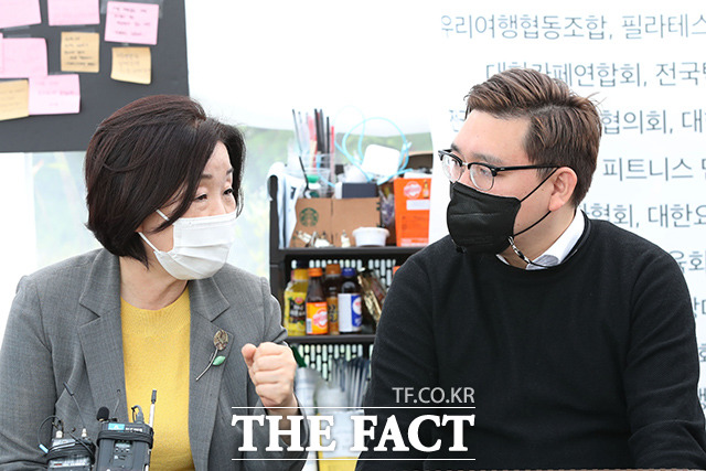 "정당한 손실 보상 이루겠다"…심상정, 자영업자 농성장 방문 [TF사진관]