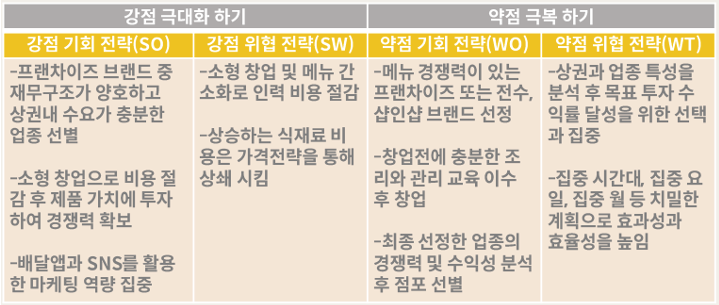 그리고 종합해서 'SWOT전략'으로 우리 매장을 개선해보세요.