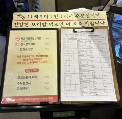 청주의 줄서는 식당 ‘대산보리밥’은 고객이 대기자 명단에 직접 이름과 인원 수, 메뉴까지 적게 한다.