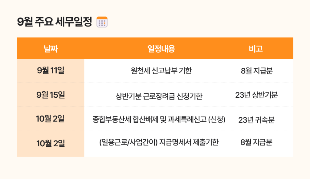 🍁 9월 주요 세무 일정