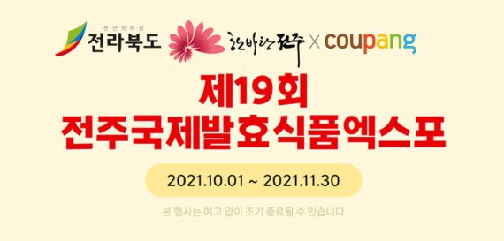 쿠팡, '전주국제발효식품엑스포 기획전' 진행.. 소상공인 판로 지원