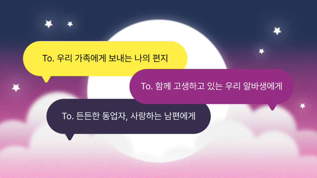 토크에 두둥실 떠오른 달을 보니 생각나는 사람이 있네요. 보름달 우체부 통해 평소 못했던 말을 전할까요?