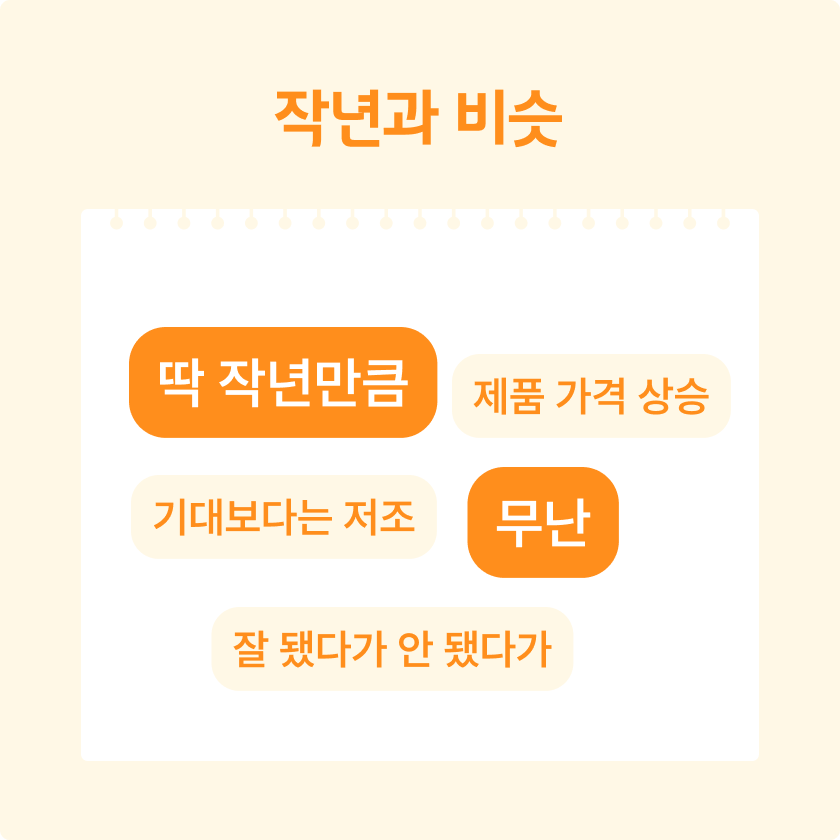 ๋ง์ง๋ง์ผ๋ก 60%๊ฐ ๋๋ ์ฌ์ฅ๋์ ๋งค์ถ์ด ์๋ ๊ณผ ๋น๊ตํด ์ข์ง ์์๋ค๊ณ ํฌํํด์ฃผ์ จ์ด์.