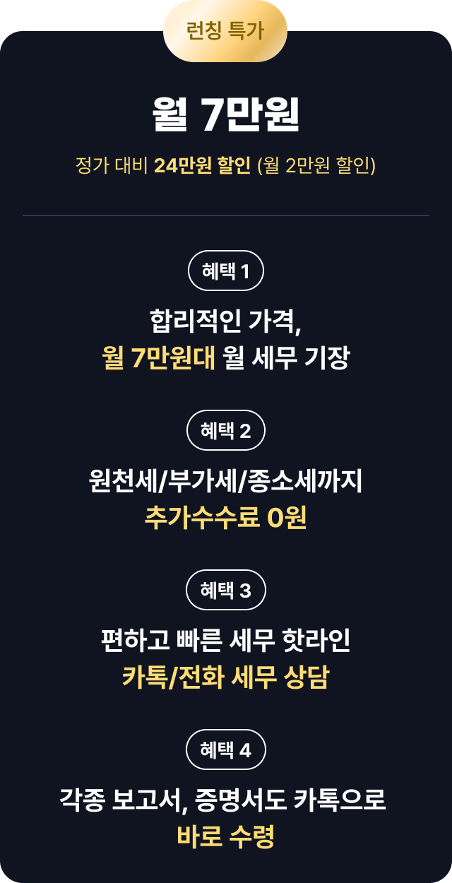 세무 서비스 이용 기간 동안 구독료 추가 없이 무료로 사용하실 수 있으며, 세무 서비스 이용 종료 시 멤버십 혜택도 종료됩니다.