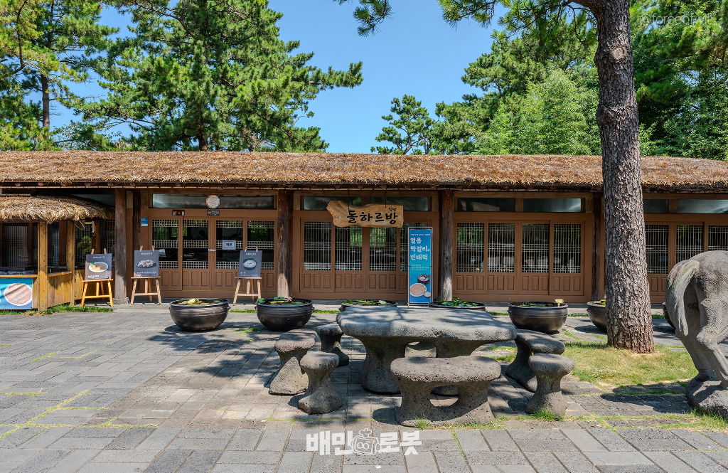 제주도 한림공원 안에 위치한 돌하르방식당은 제주바다에서 수확한 식재료를 사용해 요리하는 '향토음식 전문점'입니다. 제주흑돼지철판구이와 제주 전통 대표 음식인 몸국이 주력 메뉴예요.
