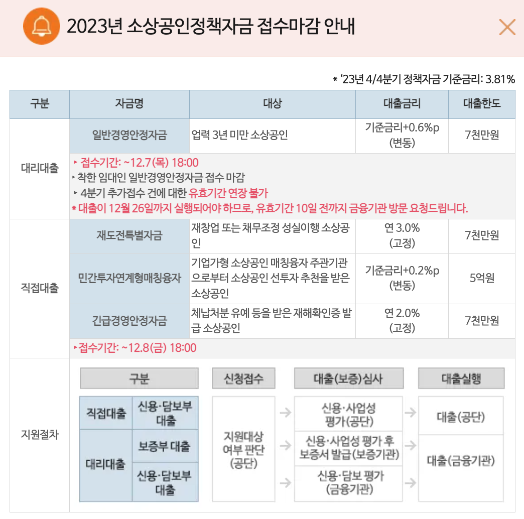 2023년 정책자금 접수 마감 안내 사항을 알려드려요. 필요하신 분들은 확인하시고 빠르게 접수해주세요!