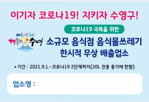 수영구, 소규모 음식점 대상 음식물쓰레기 무상 수거