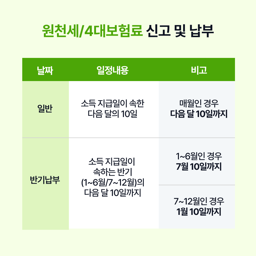 원천세 신고, 납부 및 4대 보험 납부