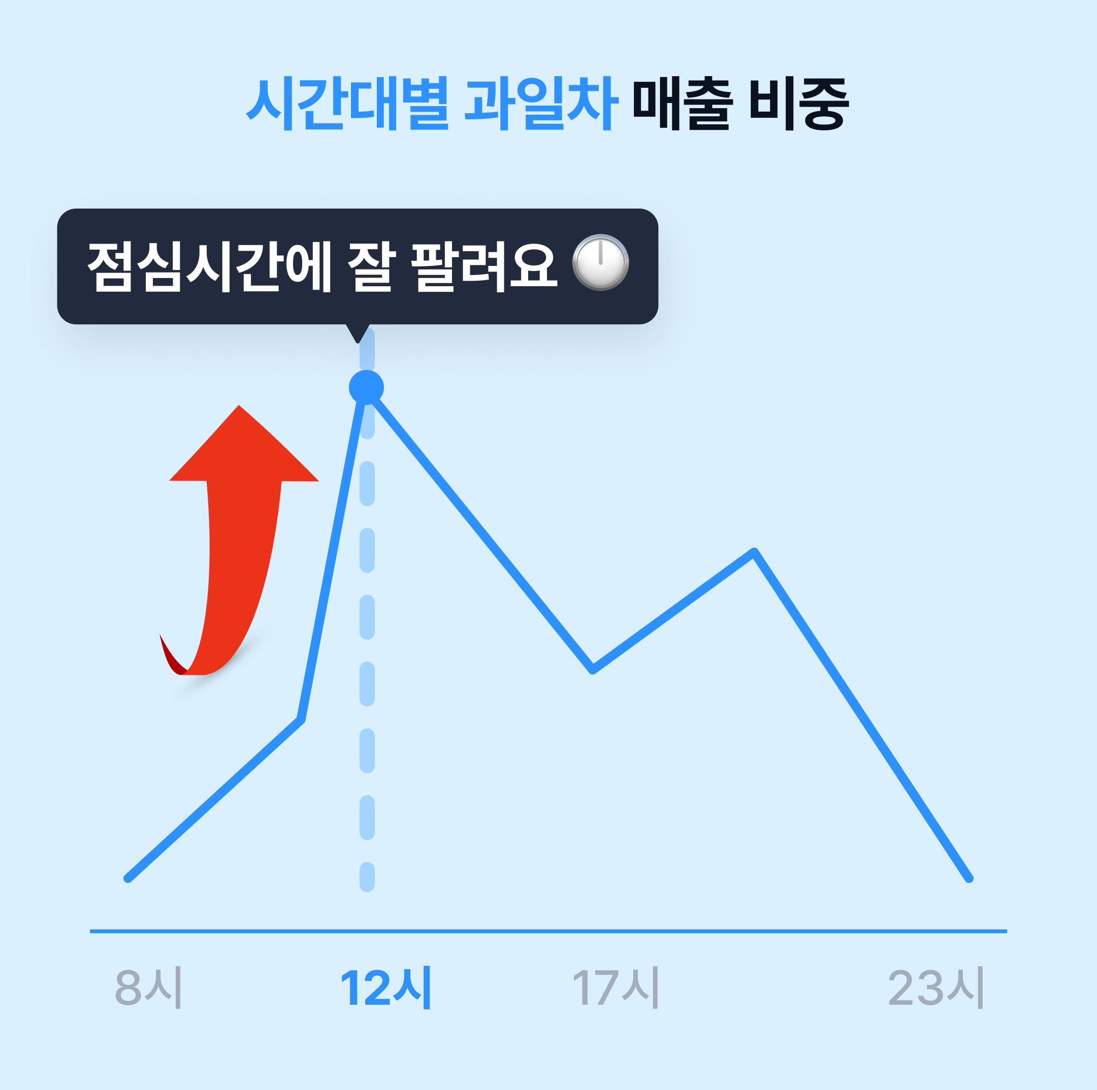 과일차는 11시를 기점으로 점심시간에 제일 매출이 크게 오르는 경향이 있어요.