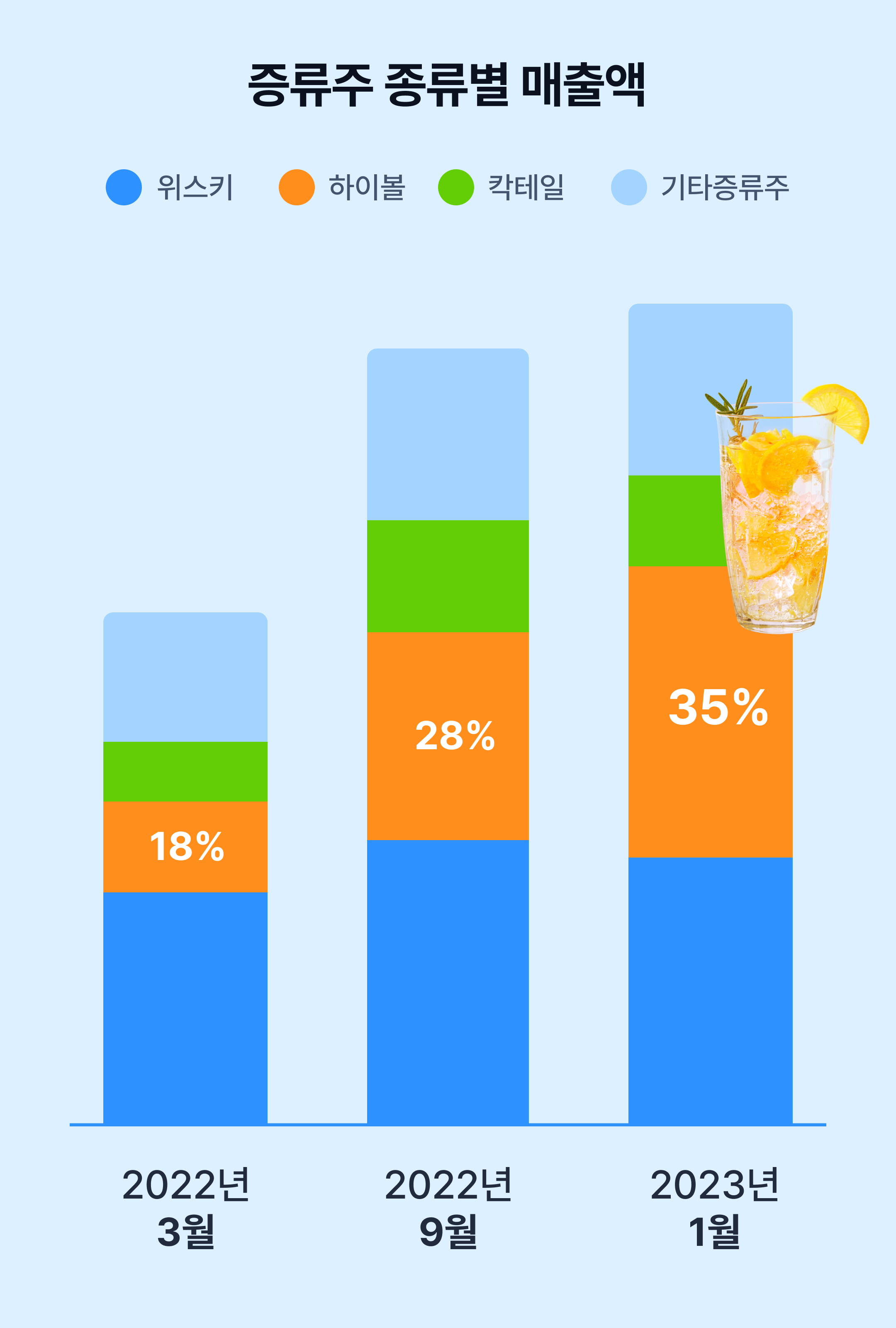 이를 증명하듯 최근 하이볼의 매출이 늘어나고 있네요!