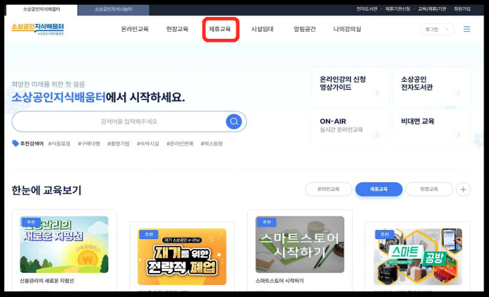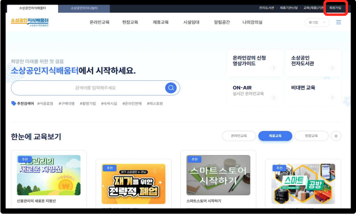 1️⃣ 소상공인 지식배움터 홈페이지 접속 후 회원가입 및 로그인