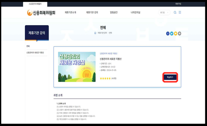 4️⃣ ‘신용관리의 새로운 지평선’ 학습 및 수료*