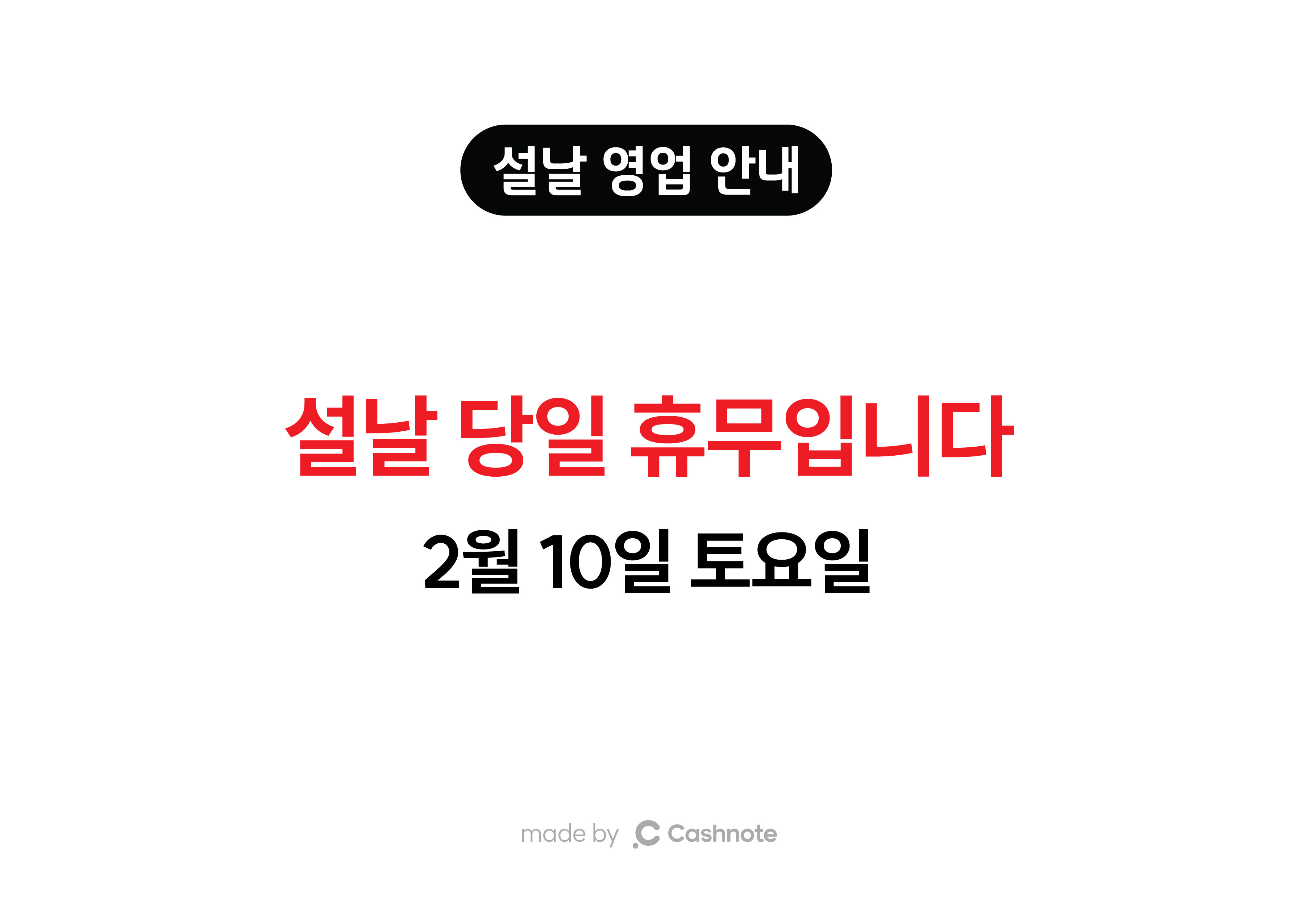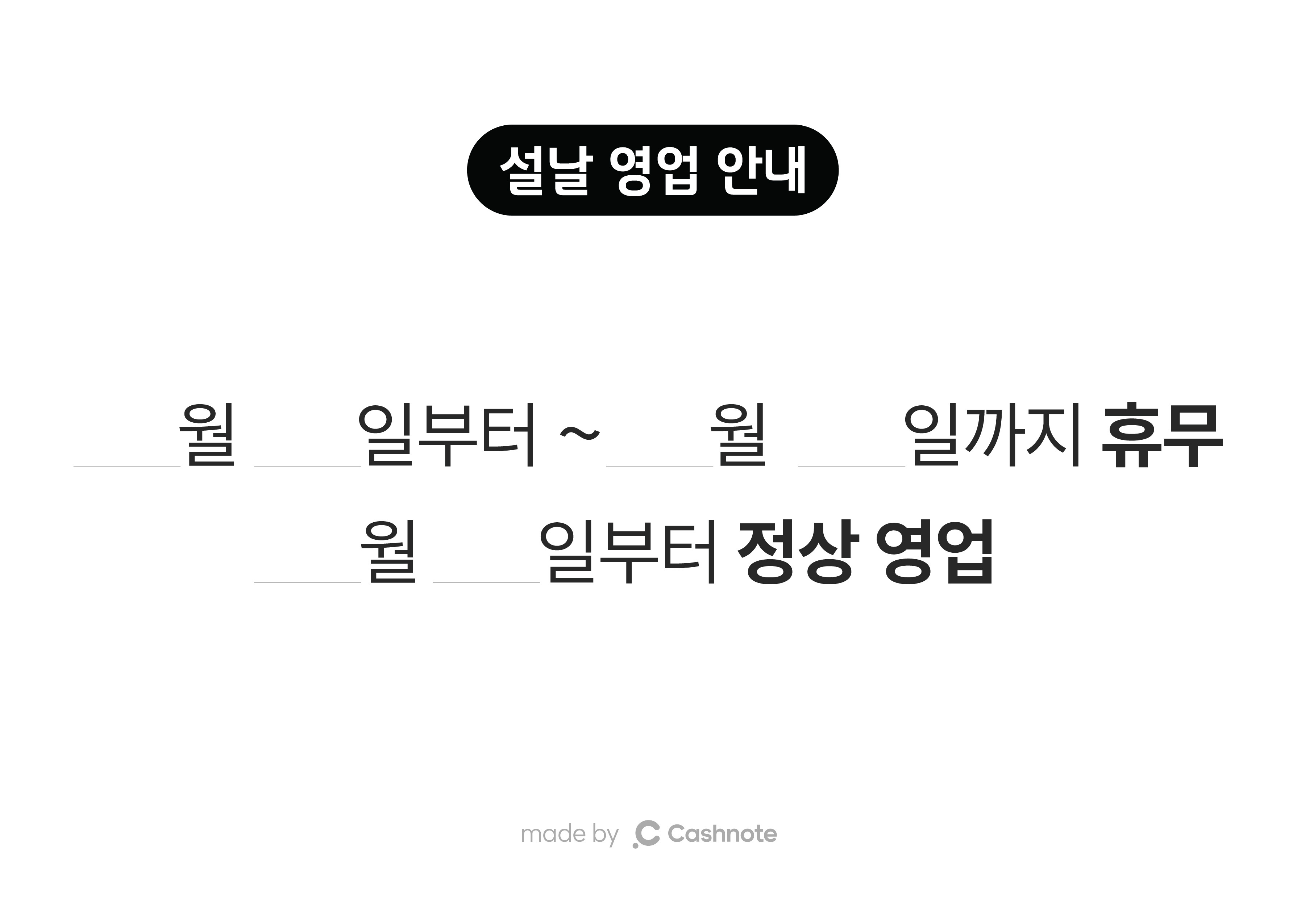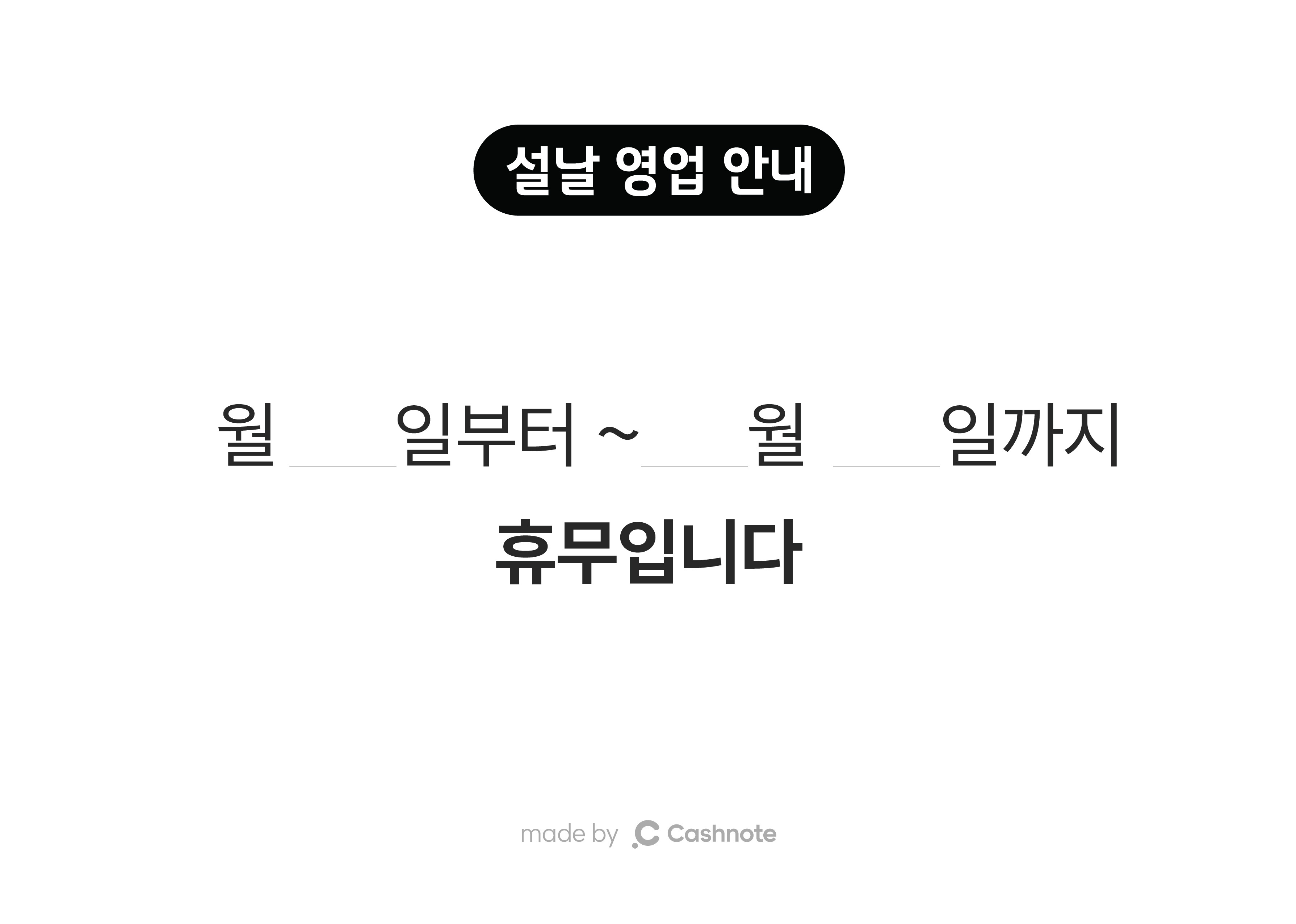 곧 다가 오는 설 명절을 맞아 사장님이 활용하실 수 있는 휴일 안내 문구 템플릿을 나눠드려요.