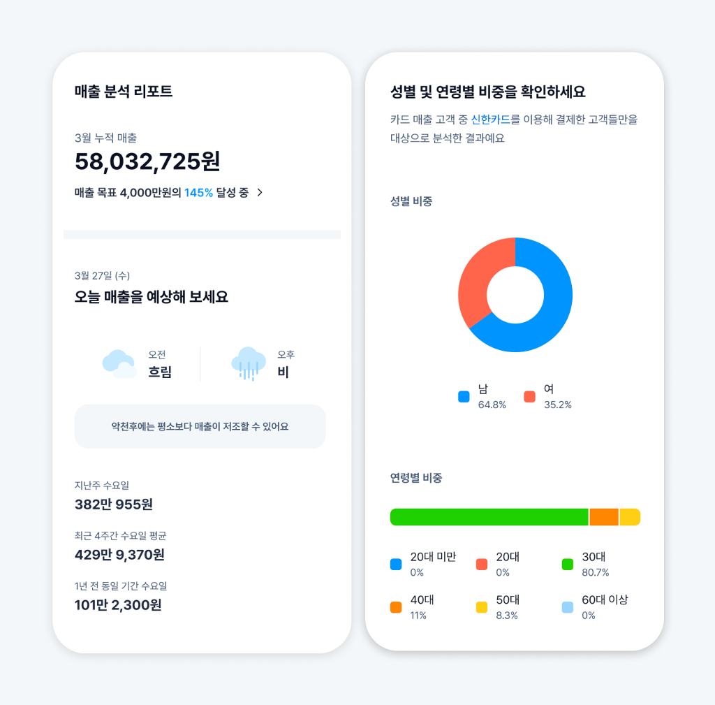 매출에서 고객 현황까지 사장님 사업장의 일간∙주간∙월간 리포트를 카카오톡으로 편하게 받아볼 수 있어요.