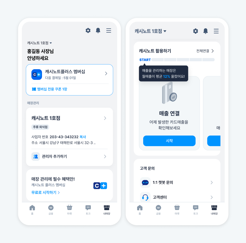 캐시노트 하단에서 내매장 탭을 클릭해 보세요! ![]() | |