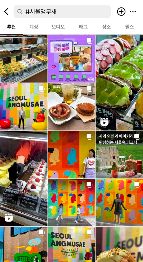 성수동이나 서울숲에서 꼭 인증사진을 찍어야 하는 곳으로 소문난, 디저트 카페 '서울 앵무새'입니다. 컬러풀한 매장 외벽과 앵무새 캐릭터로 그릇, 볼펜, 가방 등 다양한 굿즈로 MZ세대의 취향을 사로잡았습니다.