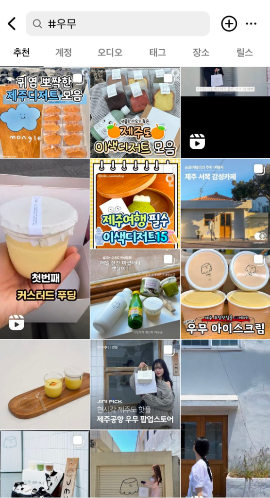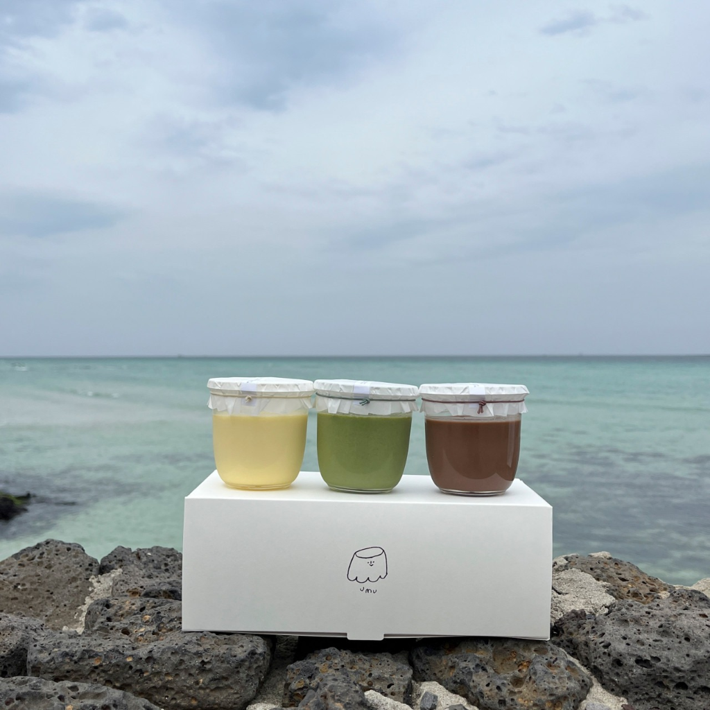 제주도 여행의 필수 코스! 디저트 가게 '우무'는 제주 해녀가 채취한 우뭇가사리로 푸딩을 만들어서 판매합니다. 우무만의 캐릭터를 이용해 가방, 뱃지 등 굿즈도 판매하고 있어요. 올해 초에는 제주국제공항 터미널에서 팝업스토어를 운영해 한 달간 약 25,000개의 푸딩을 팔았을 만큼 유명세를 이어가고 있습니다.