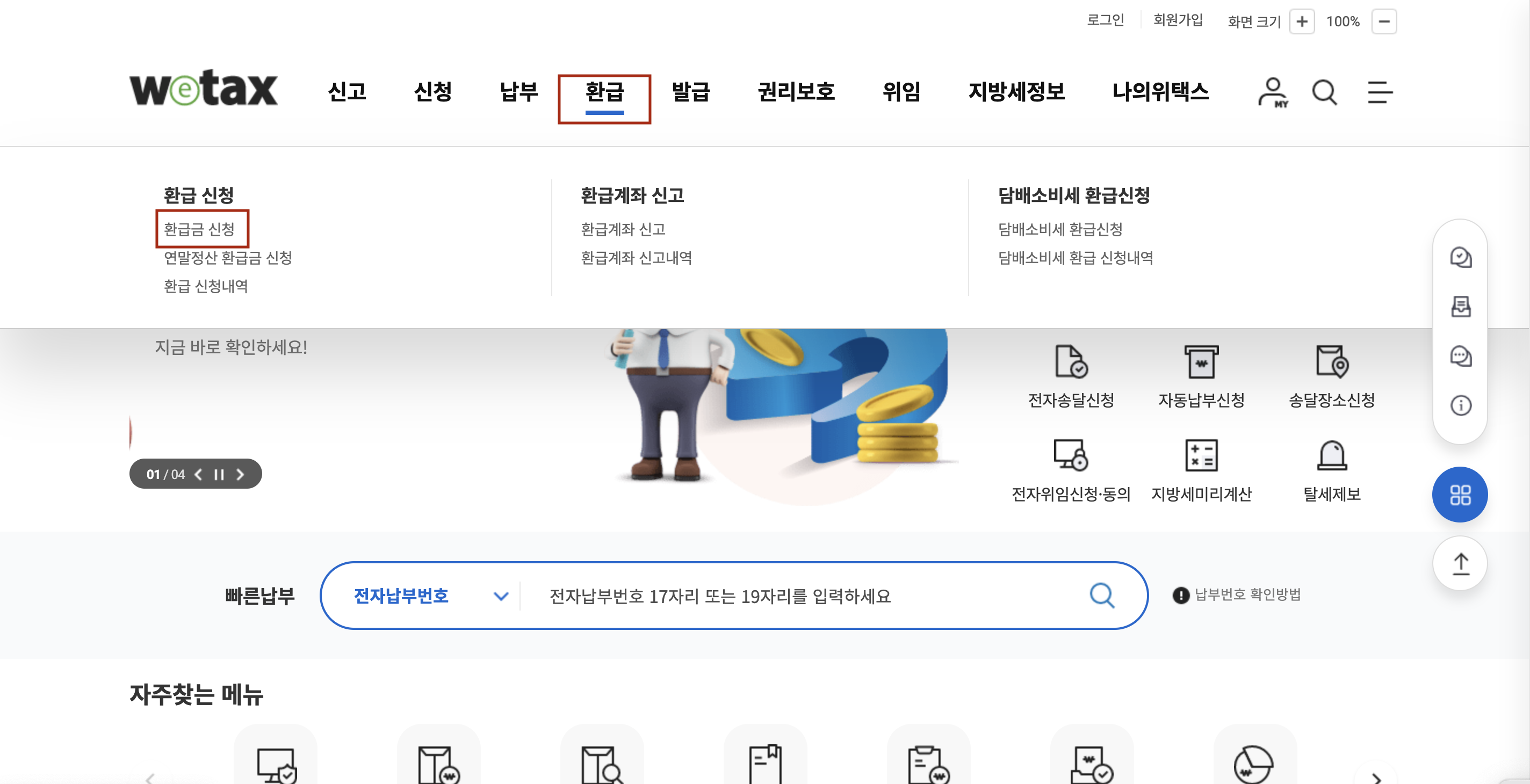 2️⃣ | 환급 > 환급금 조회 및 신청 ![]() |