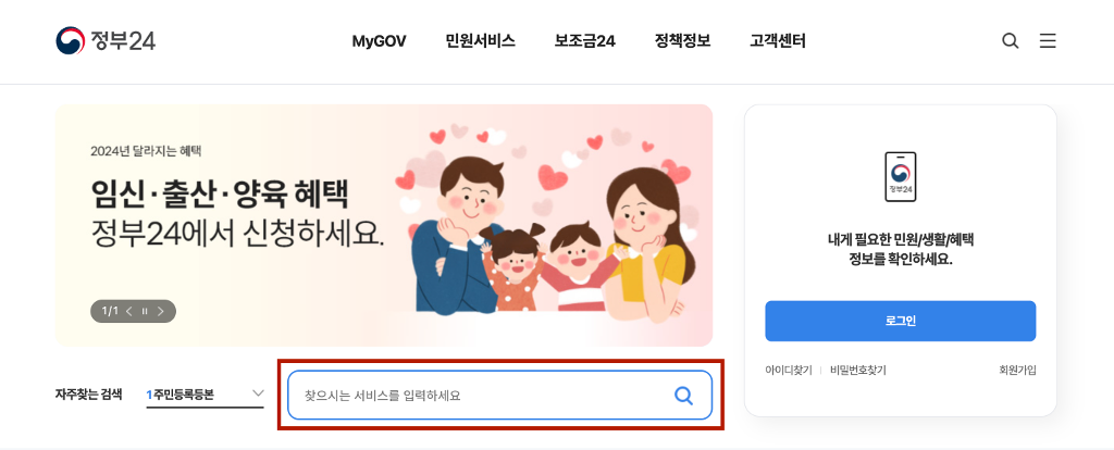 1️⃣ | 정부24 홈페이지 접속 |