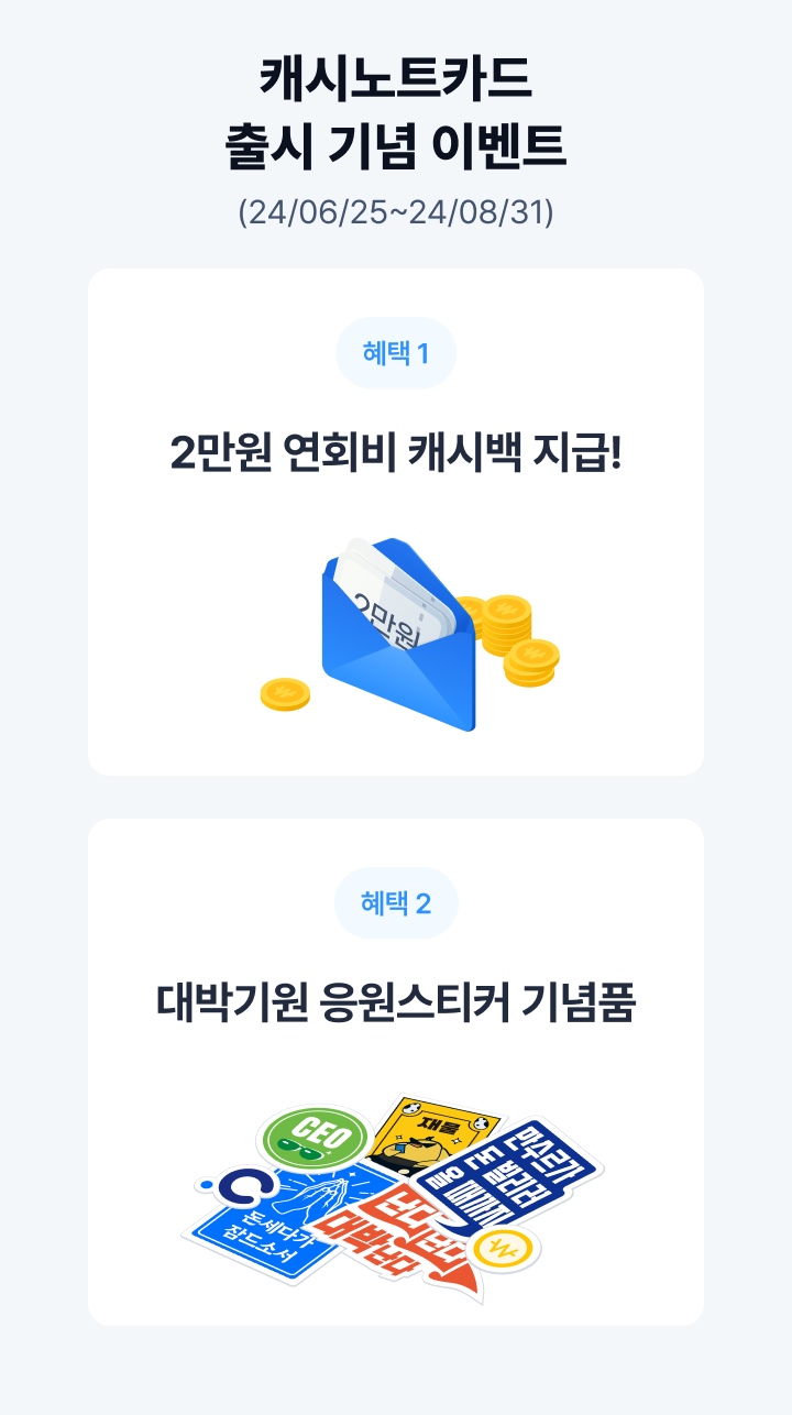 사업 비용을 아낄 수 있는 캐시노트 카드를 출시했어요.