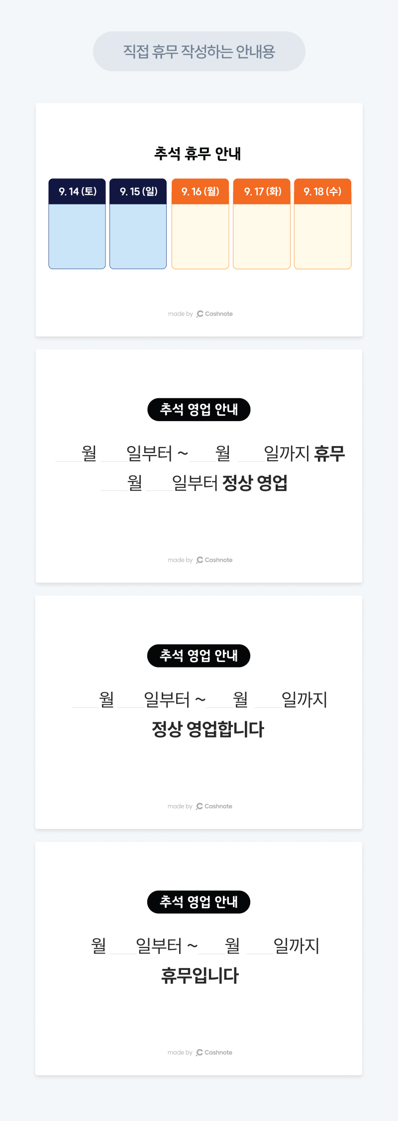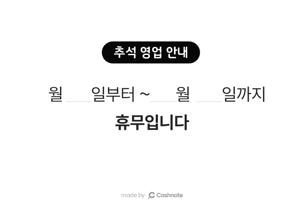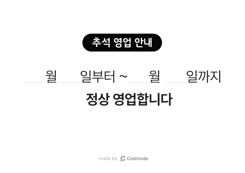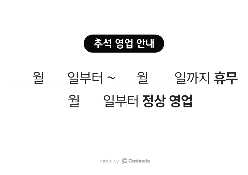 연휴 기간동안 매장에 방문하는 손님에게 간편하게 안내하실 수 있도록 무료 안내문 템플릿을 공유드려요.