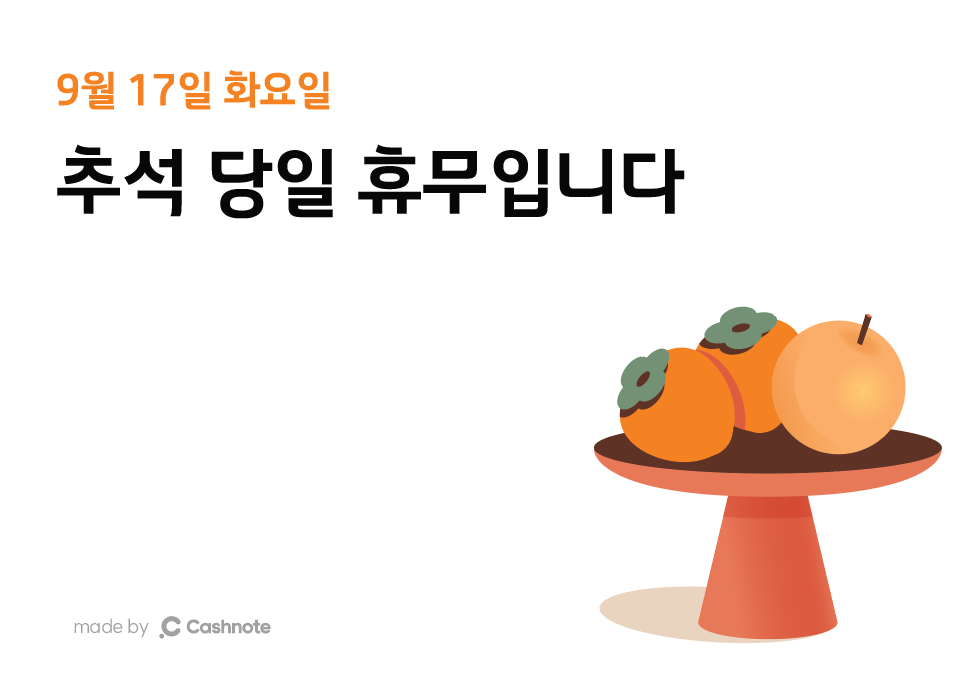 어느새 9월이 다가왔습니다. 추석 연휴 잘 준비하고 계신가요?